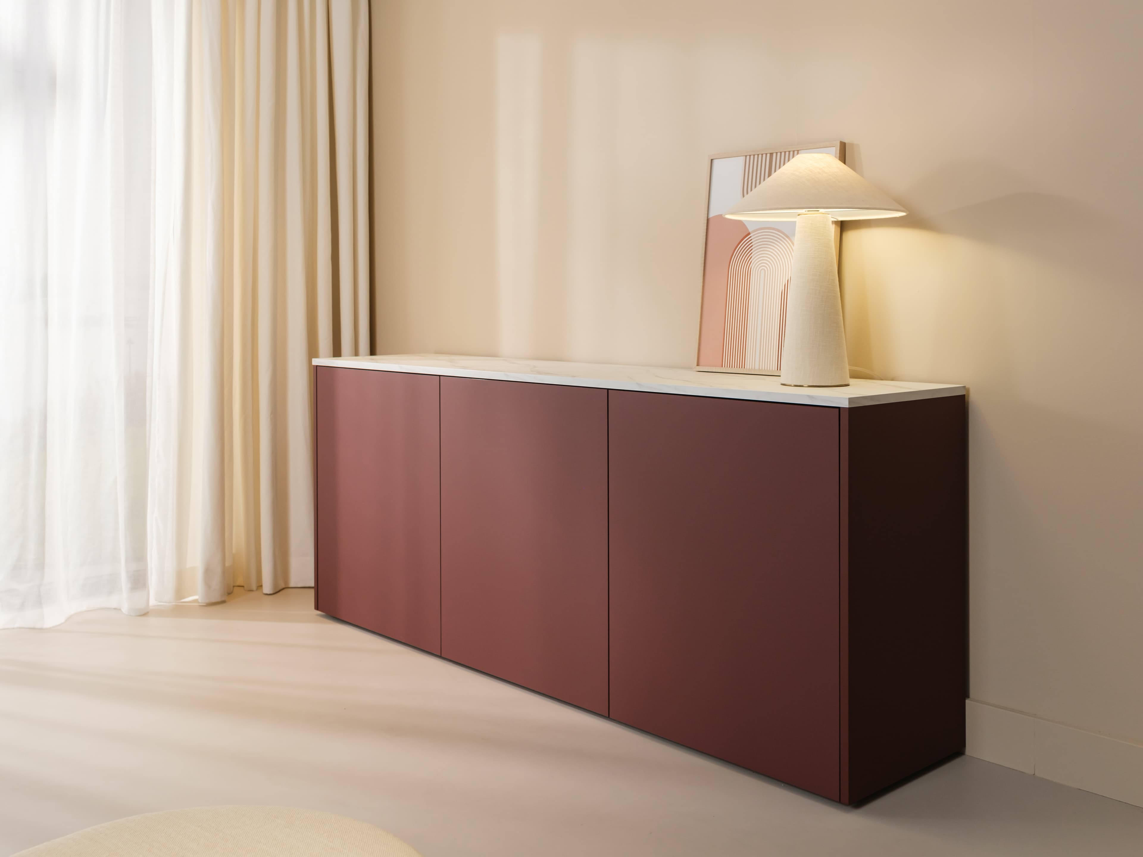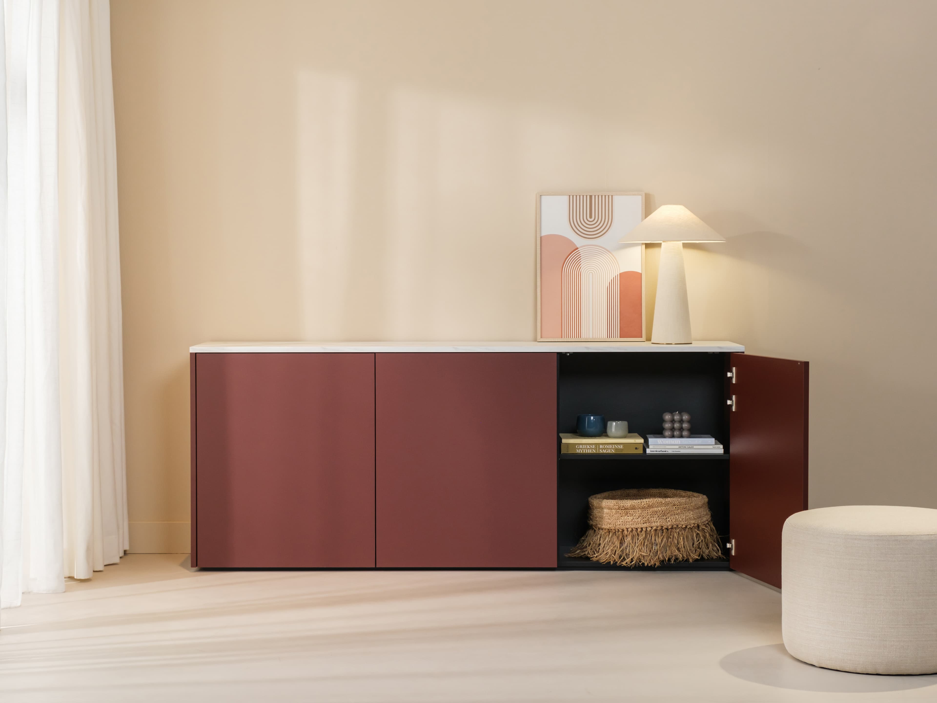Dressoir uit de Style serie met een marmerlook bovenblad. Een toegankelijk maatwerk Style dressoir van Monoz is een prachtige aanvulling op je interieur.