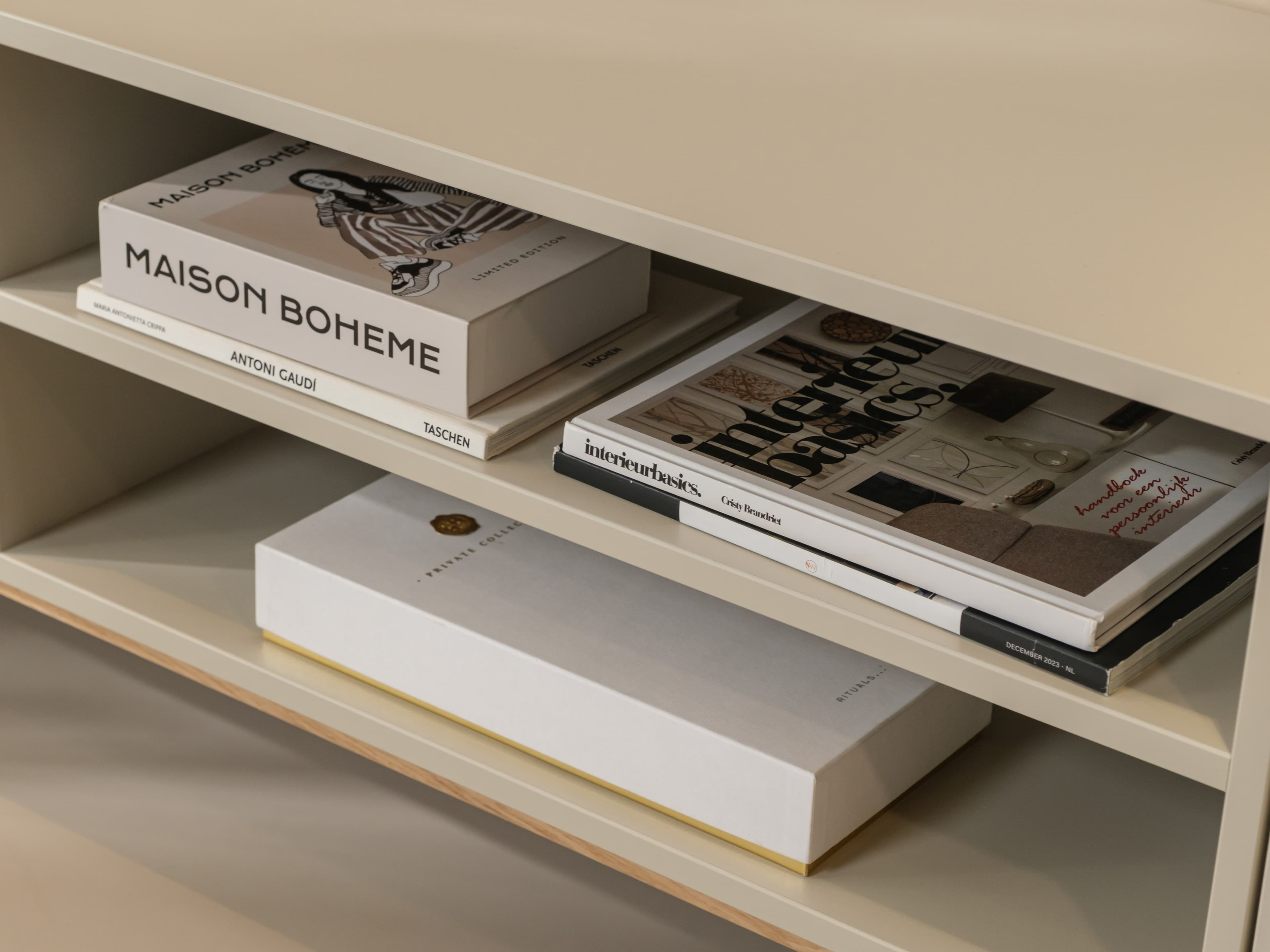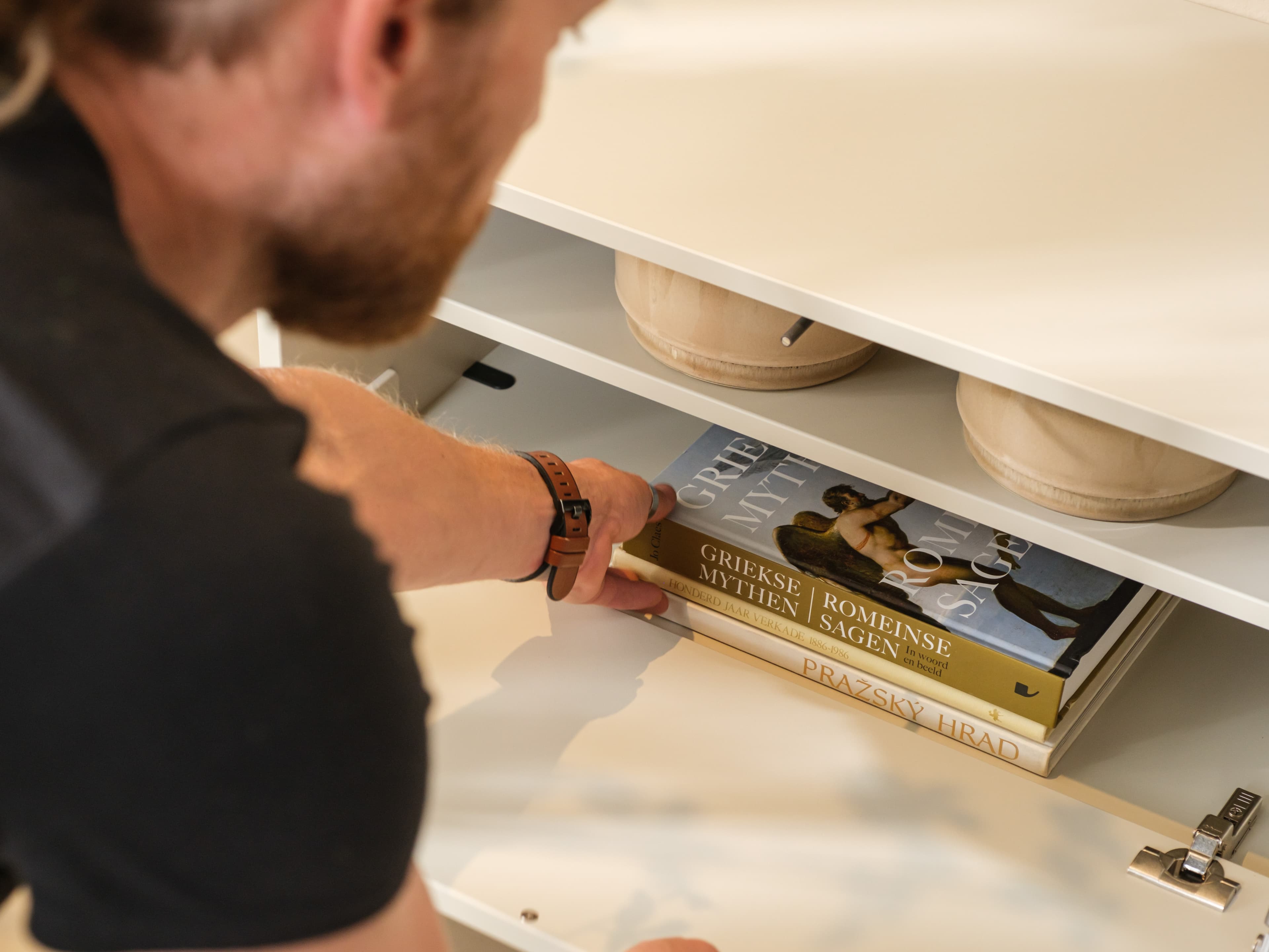Voor het opbergen van boeken, tijdschriften of een afstandsbediening is het open vak perfect. Bovendien geeft het extra diepte en ruimtelijkheid voor een sfeervol geheel.