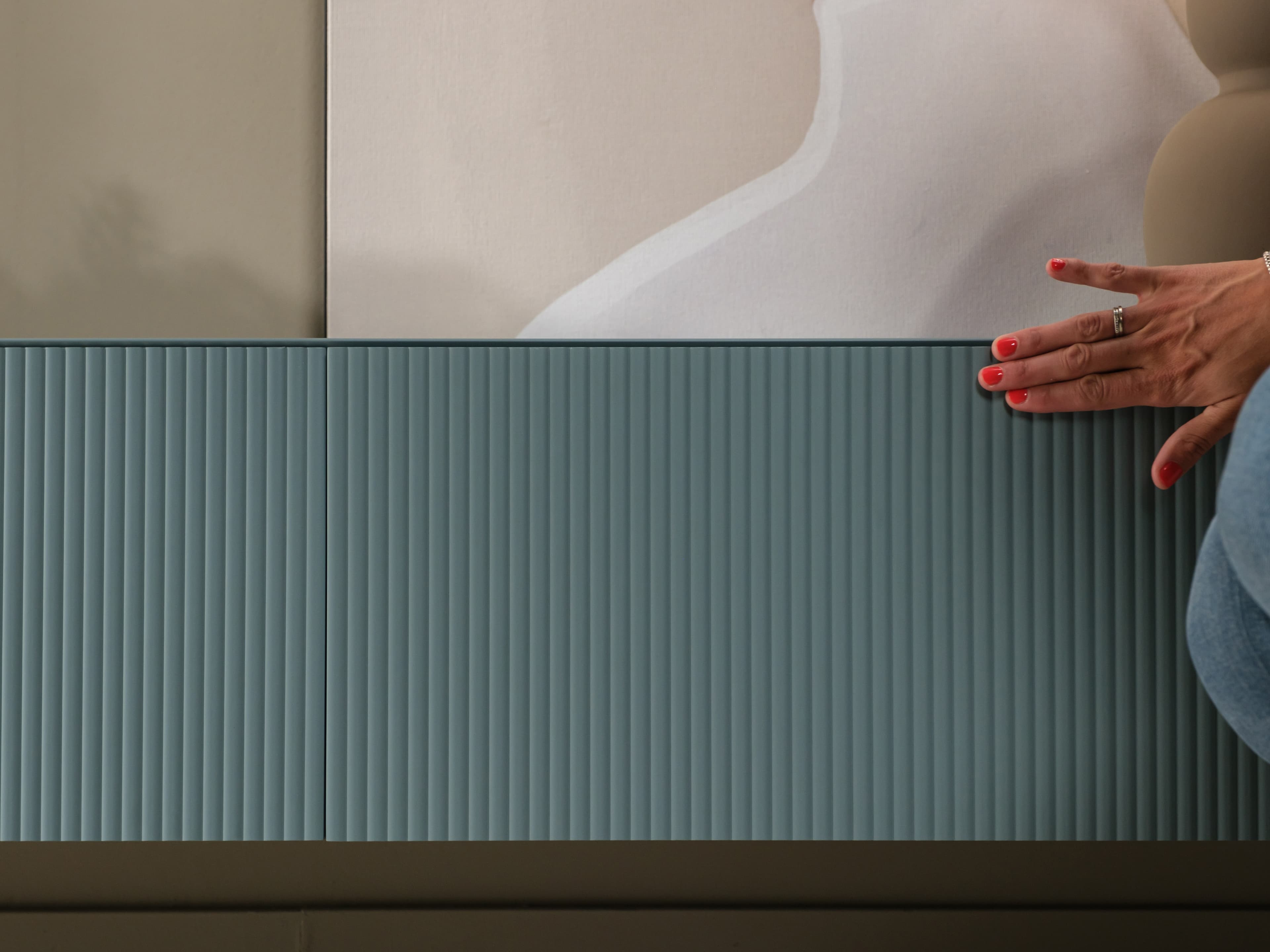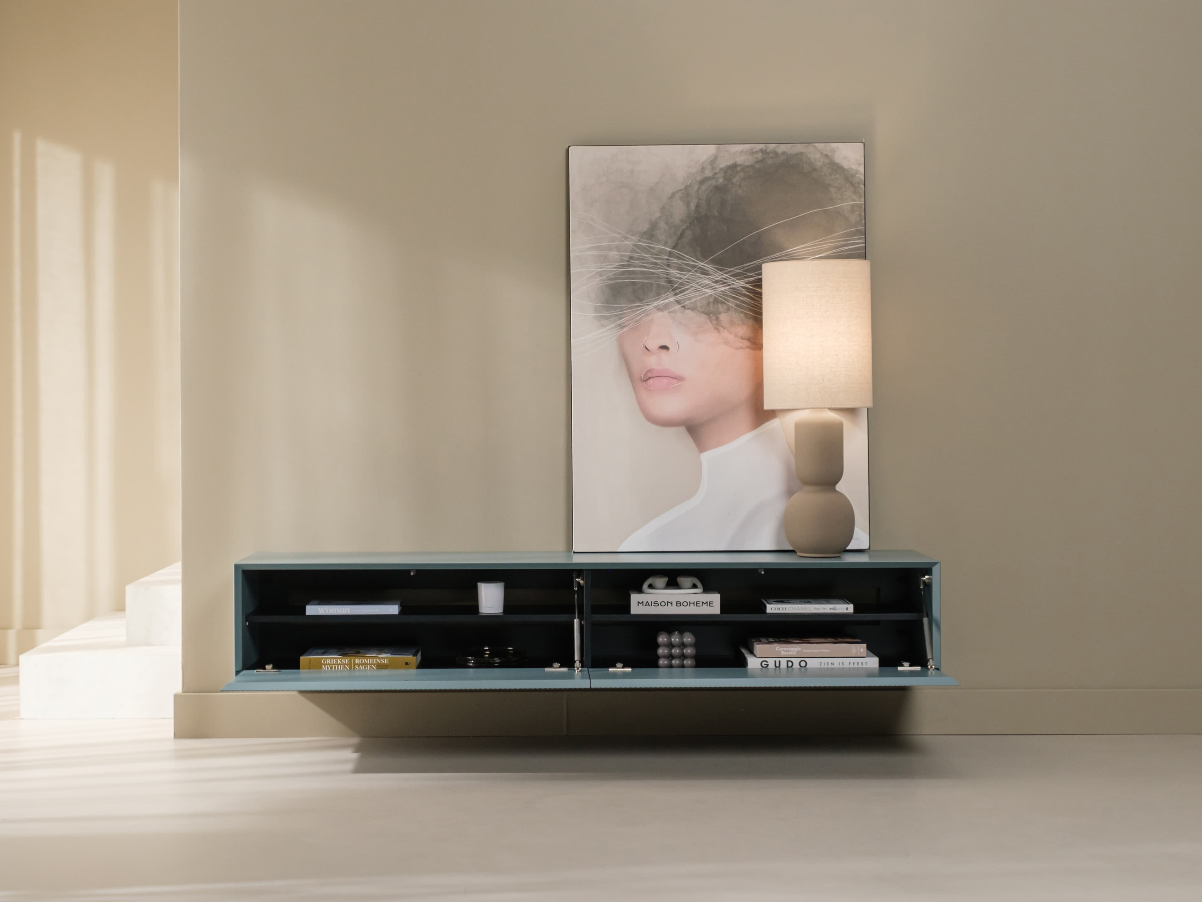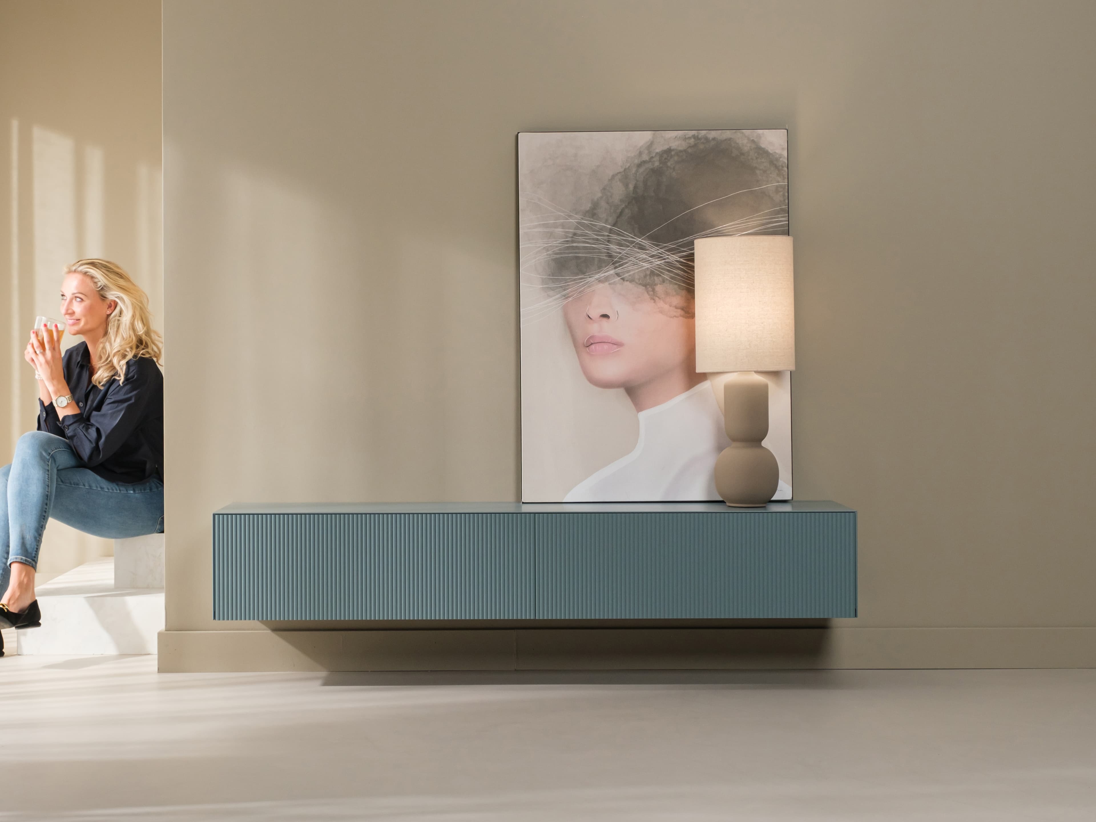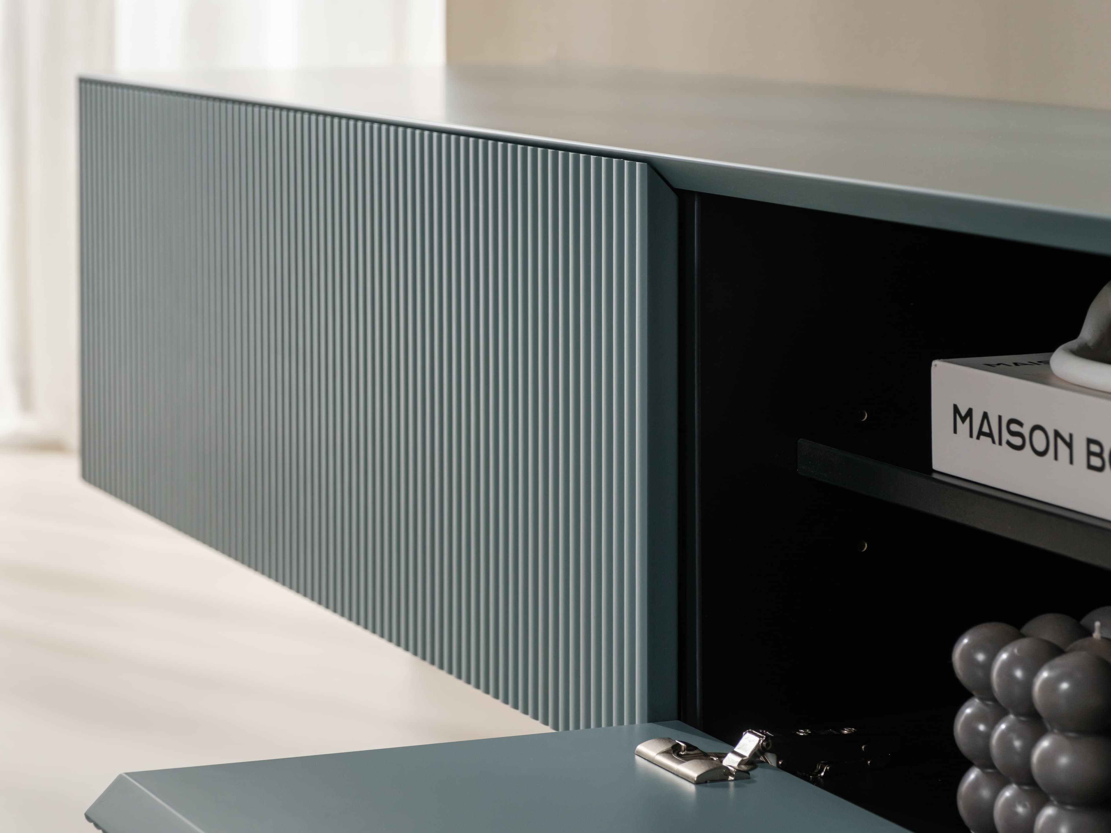 Zwevend tv meubel uit de Excellent serie. Dit model is gespoten in een unieke kleur en uitgevoerd met de ribbelfronten. Kenmerkend zijn de stijlvolle slanke lijnen en perfect afgewerkte details.